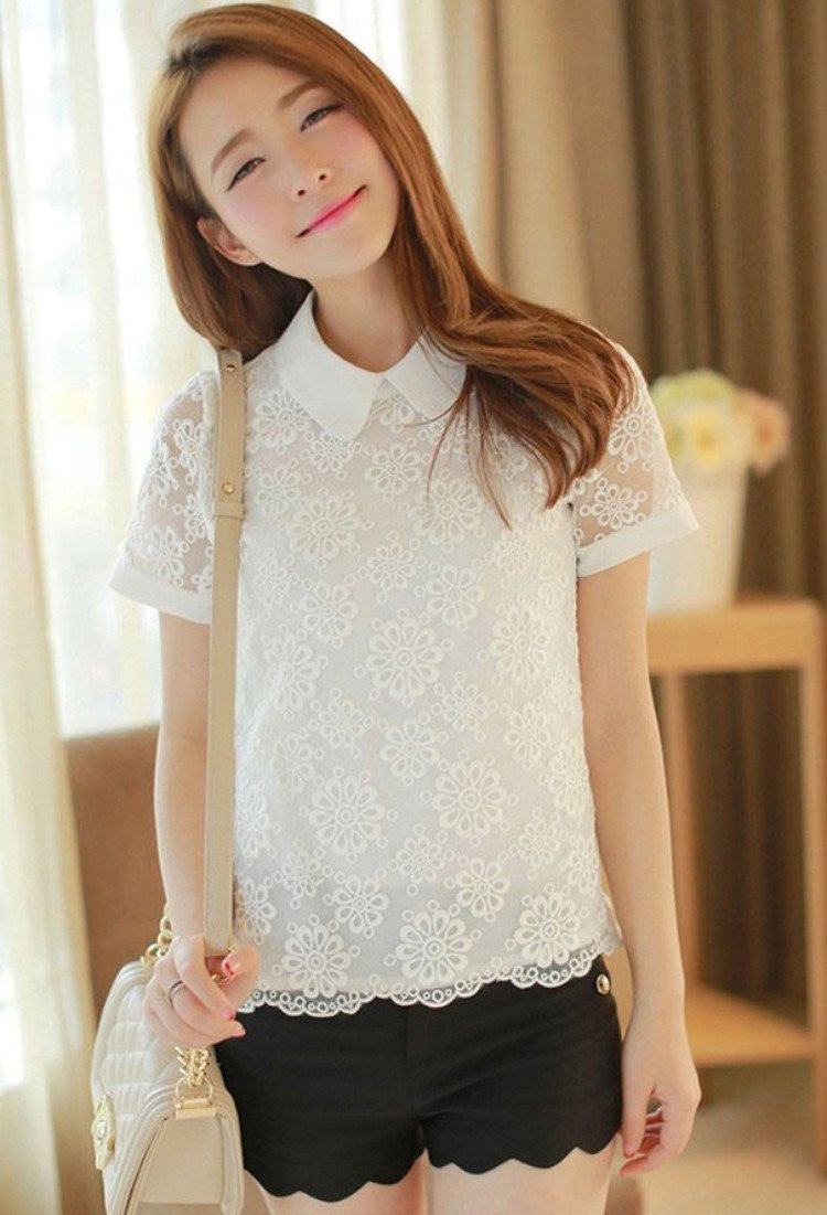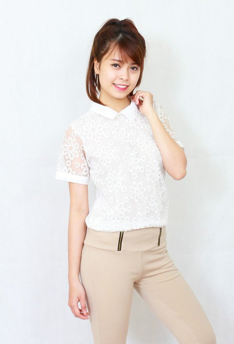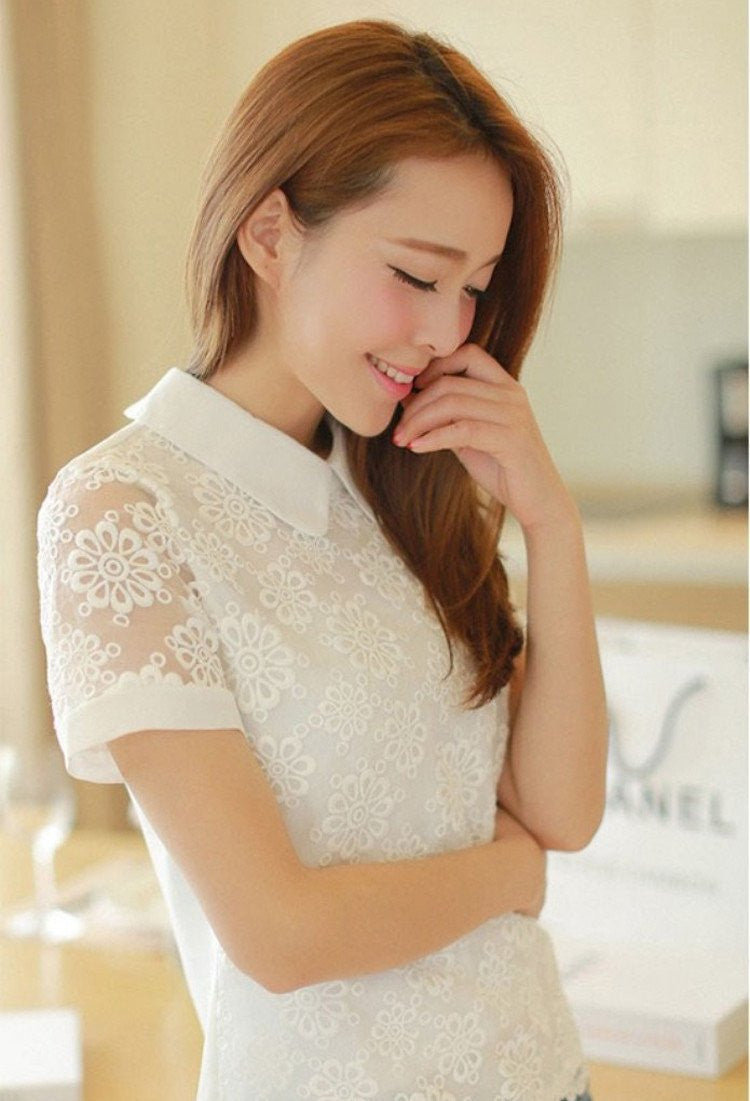 White flowers lace shirt